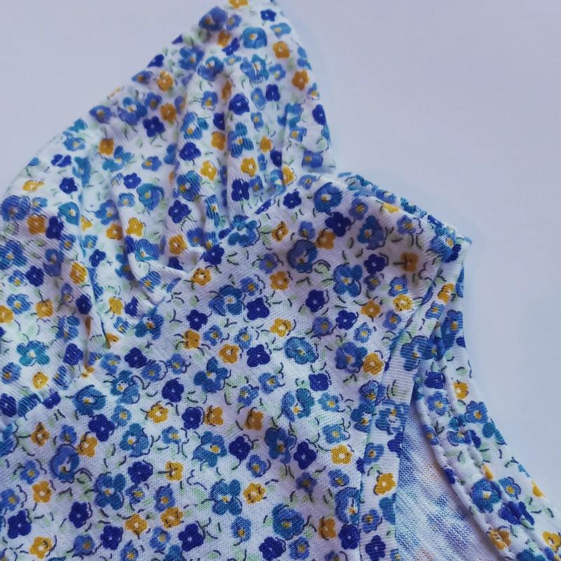 Красивая футболка в цветочный патриотический цвет. на плечах в виде рюши. замеры: длина 44,ширина 32