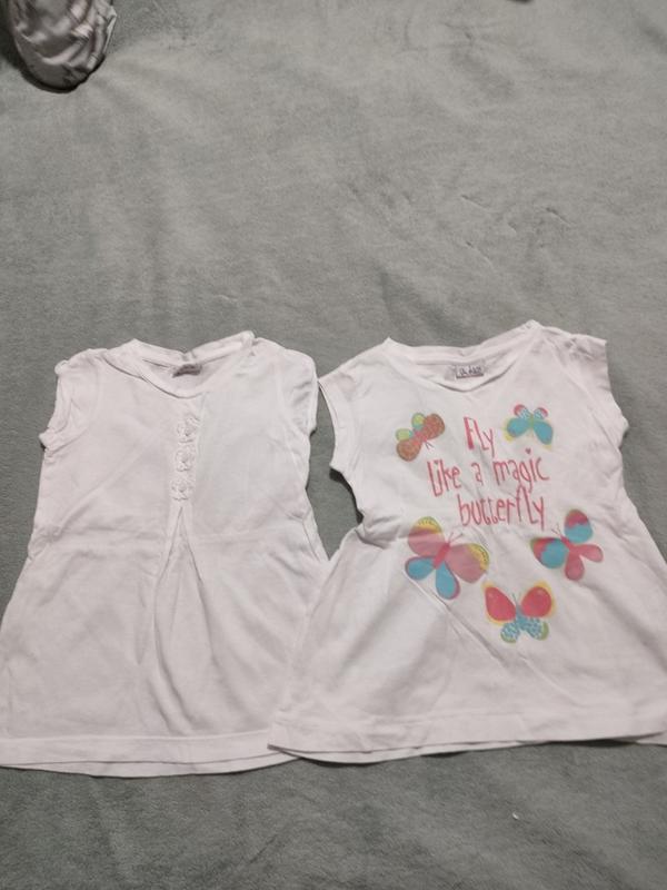 Футболки для девочки на 2/3 и 3/4 года но почти одинаковы по размеру. Хорошее состояние, стоимость за 2 штуки.