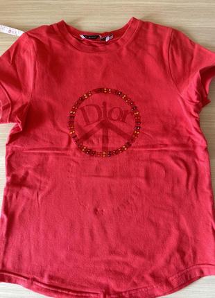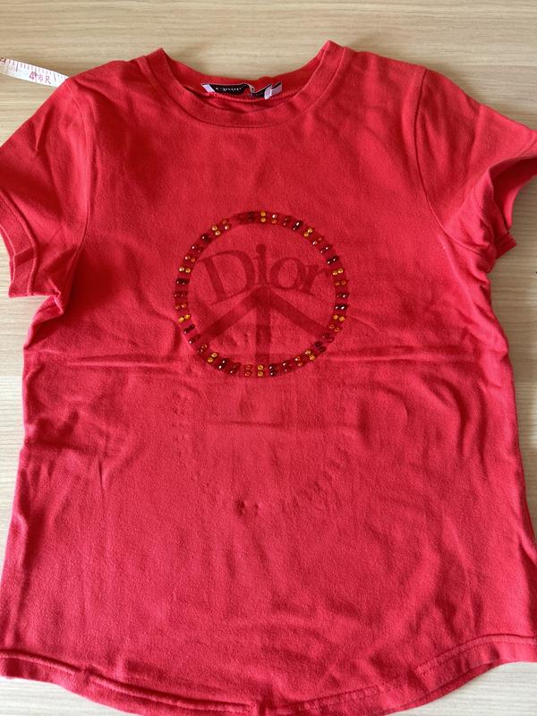 Футболка Dior оригінал на дівчинку 7-9 років, вказаний розмір 10 років але малрмірить . Заміри довжина по спинці 43 см, ширина 33 см, стан хороший , з дефектів тільки шов внизу в двох місцях по 1 см. ( див.фото)