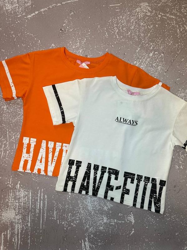 Белая на девочку 10 лет (140 см рост) ПОГ 39 см ПОТ 40 см Длина 45 см Плечи 40 см Оранжевая футболка на девочку 11 лет (146 см рост) ПОГ 40 см ПОТ 40 см Длина 48 см Плечи 40 см Есть накладной платеж по предоплате Отправка на каждый день новой по почте и УкрПочта