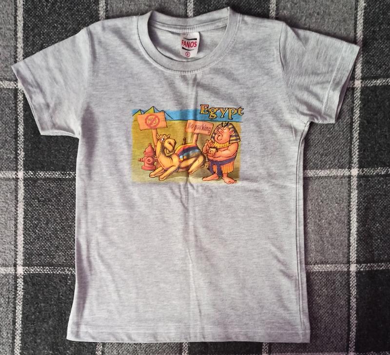 Детская футболка Fanos на 8 лет или рост до 128 см. В красивом состоянии, материал хлопок, выполненный в Египте. Длина 49 см, плечи 29 см, ПОГ 36 см, рукава 12 см.