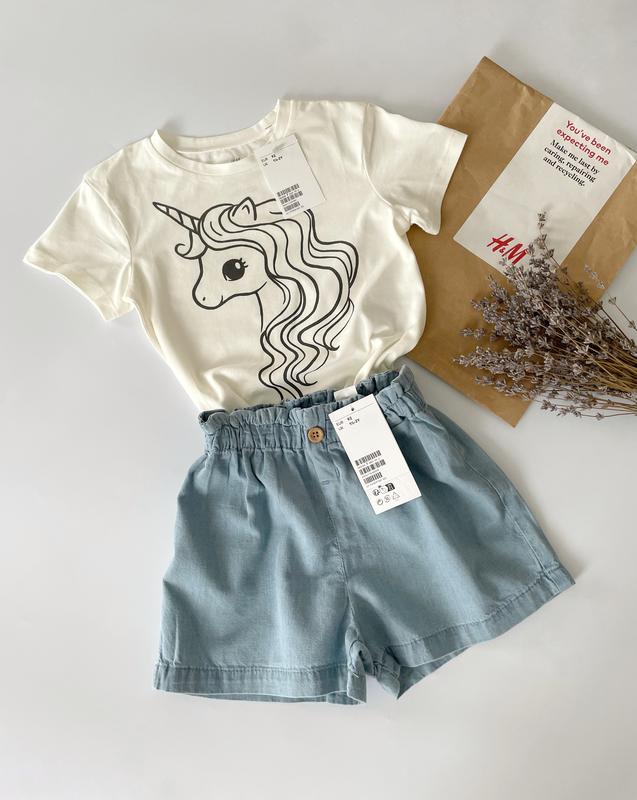 Хлопковая футболочка H&M🦄 Размеры: 92 см✅ 98/104 см✅ 110/116 см✅ 122/128 см✅ 💸Цена - 180 грн Шортики с утяжкой в поясе🥰 92 см✅ 98 см✅ 104 см✅ 💸Цена - 399 грн За комплект - 550 грн🔥