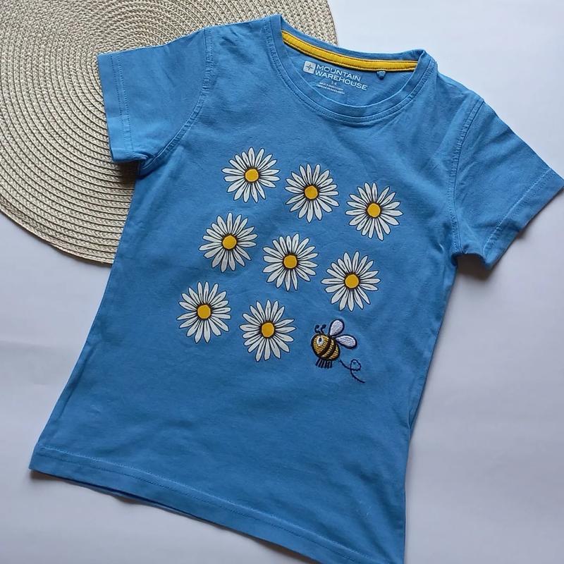 красивая футболка с принтом ромашек и вышитой пчелкой длина 44, ширина 30