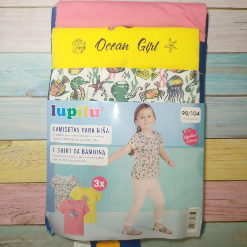 Стильные качественные футболки от немецкого бренда Lupilu. в наличии размер на 1,5-2, 2-4, 4-6 лет состав: 100% хлопок цена указана за 1 шт, продажа набором стоимость набора 360 грн