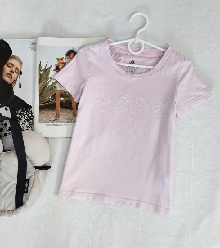 розовая футболка Adidas прямого кроя для девочки 7-8 лет 128 см