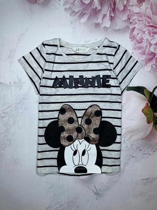 Футболка с Минни Бантик блестящий Состояние отличнейшее 🏷️H&M 4-6 лет/110-116 Длина 40. ПОГ 30