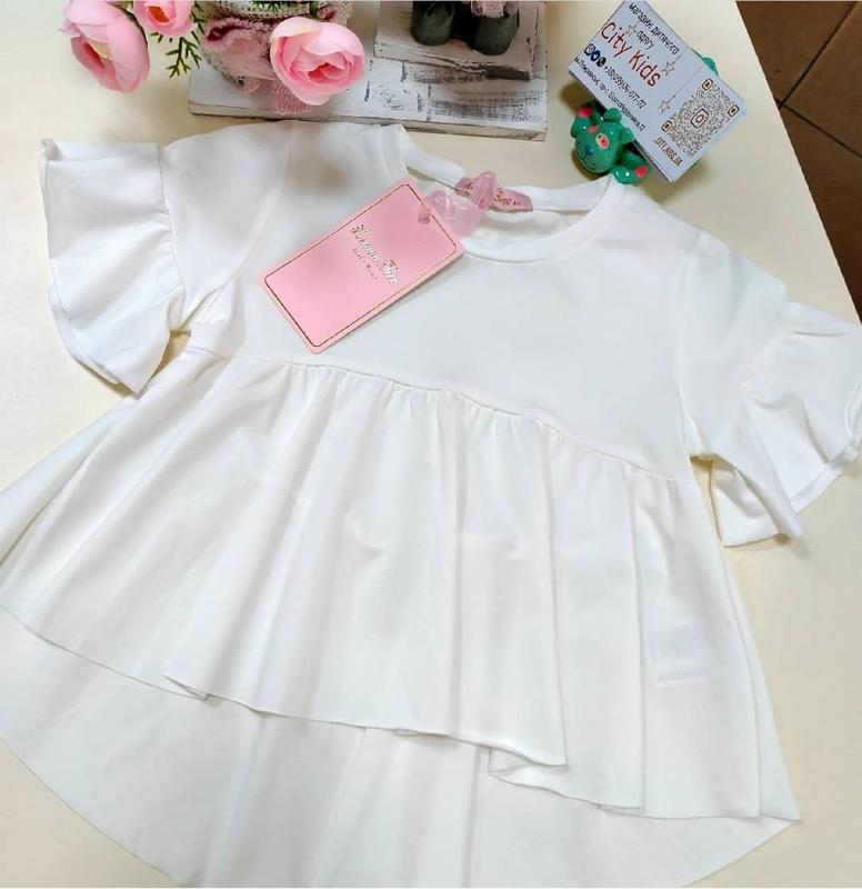 легкая футболка укороченная спереди на 8-9 лет замеры: плечи 29,5см полуобхват груди 36см длина по спинке от плеча 43см длина впереди плеча 36 см