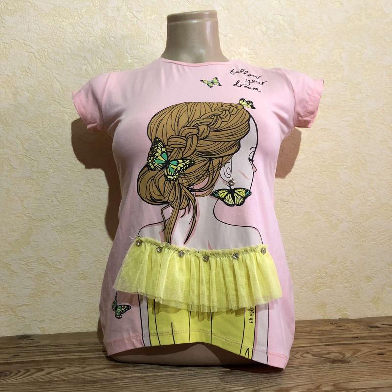 Туника Девушка. Невероятно красивая футболка, украшенная жемчужинами и рюшей. Стильная, крутая и модная футболка, которая дополнит любой современный образ вашего ребенка. 95% бавовна, 5% еластан. Турция. Размер: 📌152 см: НОГ 38 см, довжина 56-58 см. 📌164 см: НОГ 39 см, довжина 58-61 см.