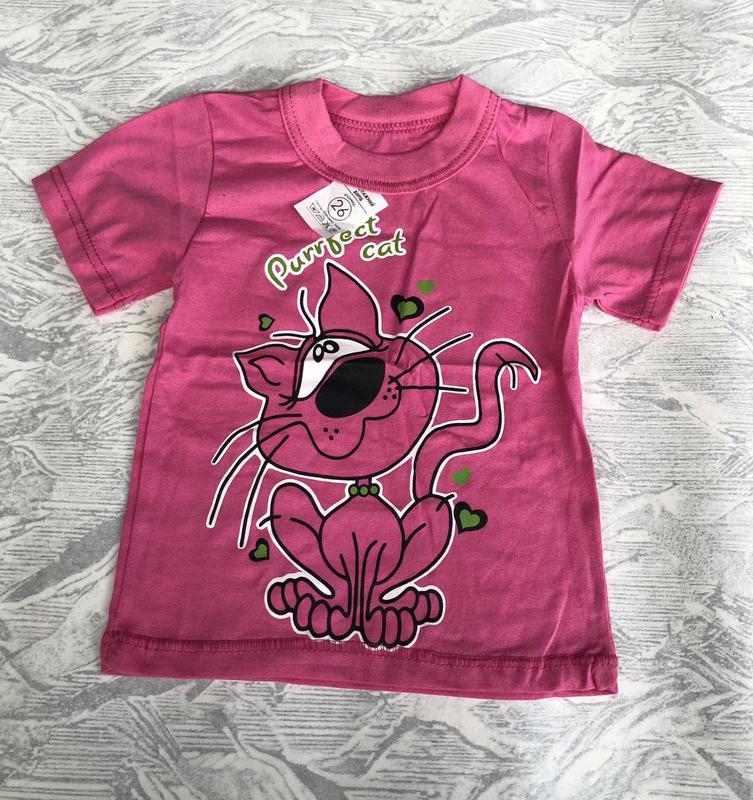 Футболка Котик. Тоненькая и легкая футболка для жарких летних дней. Рисунок накат. 100% бавовна. Украина. Размер: 📌 28/56 (98-104 см):, довжина 39 см, НОГ 30 см.