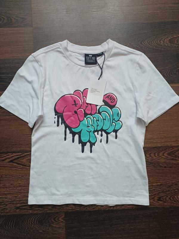 Продам новую детскую футболку. Отличного качества. для девочки 6-7роков. есть пятнишко на фото показано, нужно постирать.