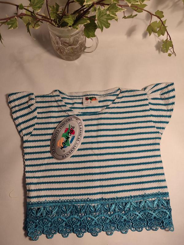 Майка морячка в полоску голубая белая, детская майка на девочку голубая, детская одежда на...
