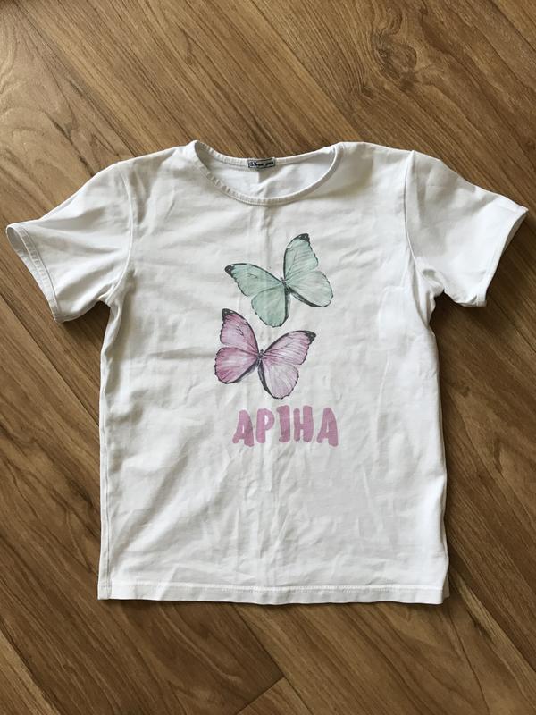 Футболка для Арины. Длинна-47 см, пог-36 см, плечо-7 см.