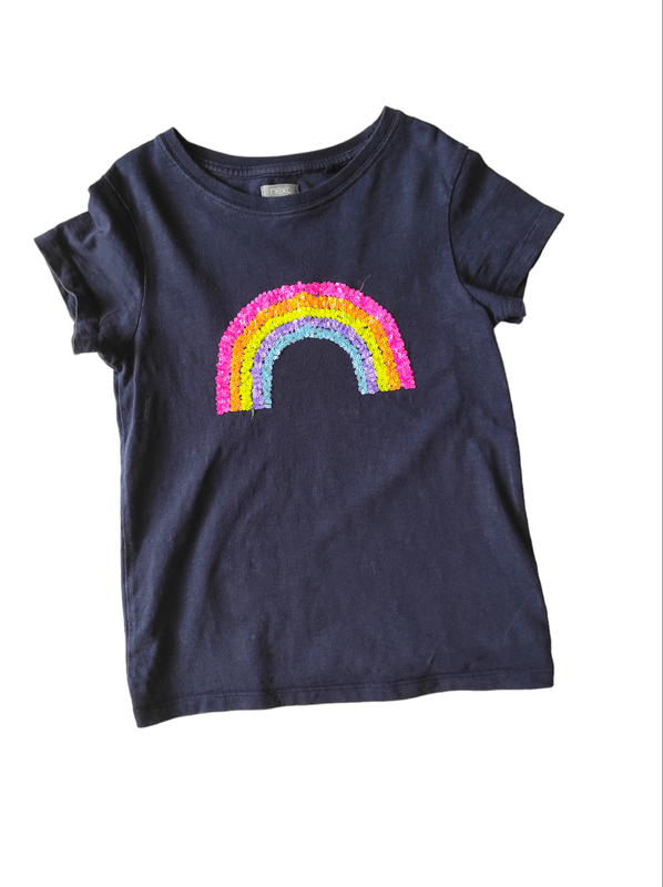 Футболка Радуга 8 р. Ориентировочно на рост 128 см. Замеры: по 34,5 см, длина 49 см.
