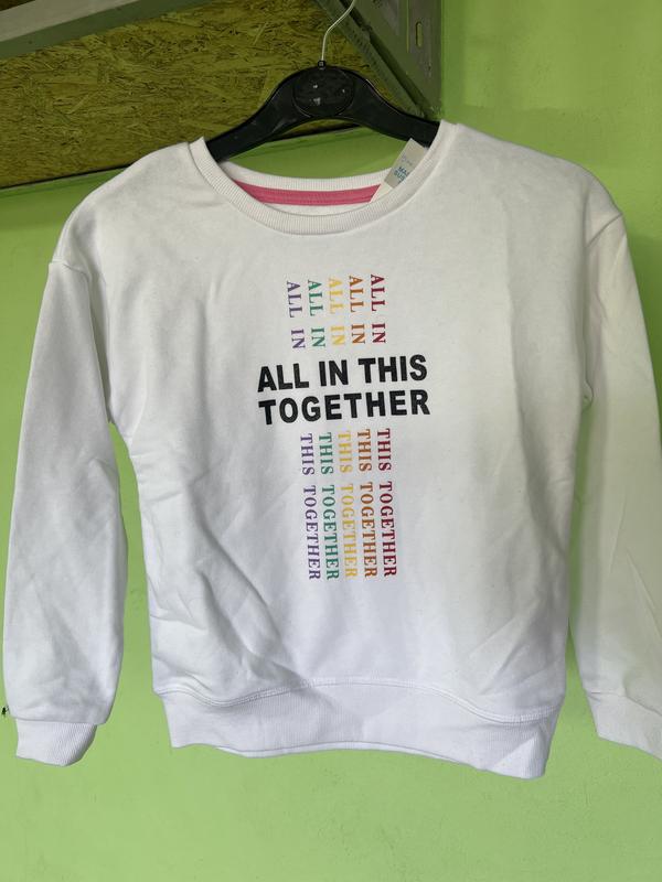 Світшот для дівчинки 7-8 років(128см.) Довжина-46 см. Ширина-36 см. Рукав- 40 см. Рукав від шиї-53 см. 10-11 років (146см.) Довжина-55 см. Ширина-39 см. Рукав-46 см. Рукав від шиї-60 см. Виробник: Primark. Наявність: Є в наявності. Колір:білий. Склад: 58% коттон, 42% поліестер; Ціна:280 грн
