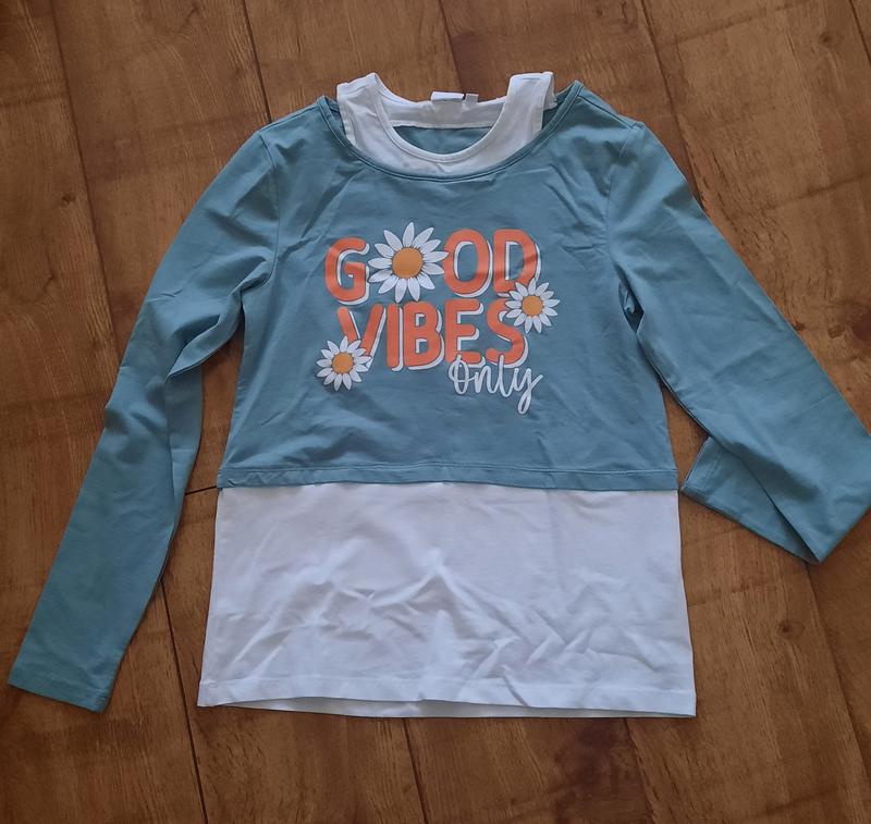 Красивенький лонгслив на девочку Интересный крой создаёт эффект туники одетой на майку. Очень мягкая и приятная на ощупь Состояние: Новая. Без бирки Размер: 13-14 лет (рост 164см) Цвет: белый, мятный
