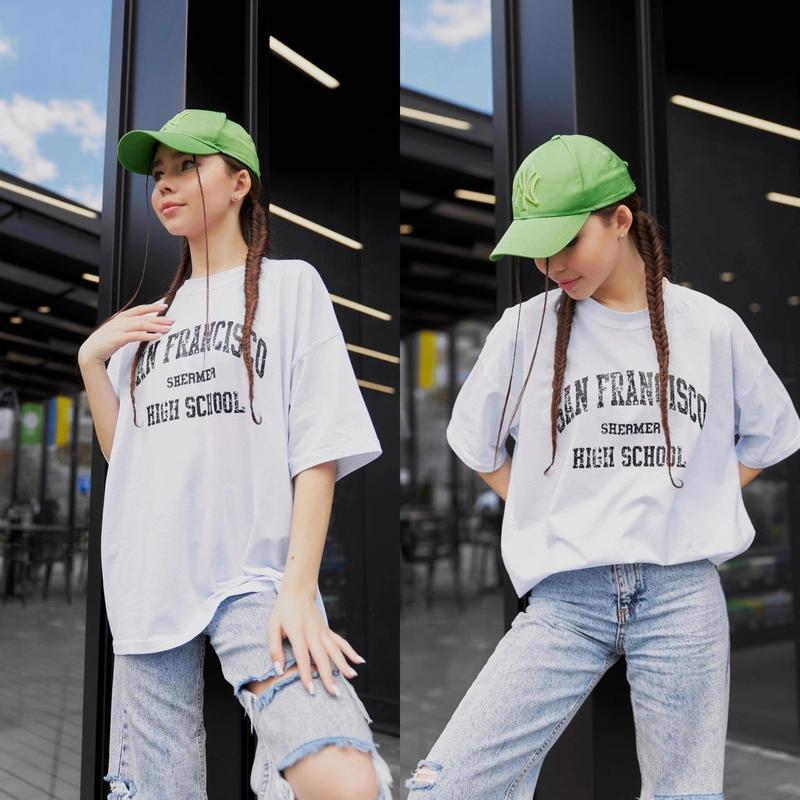 Футболка SAN FRANCISCO посадки овер с накатом крупномерит Ткань-кулир Цвет БЕЛЫЙ Очень хорошего качества! рост/длин.футб/пог похибка+-2см 140-146/53/54-2шт 146-152/57/55-3шт 152-158/60/55-1шт