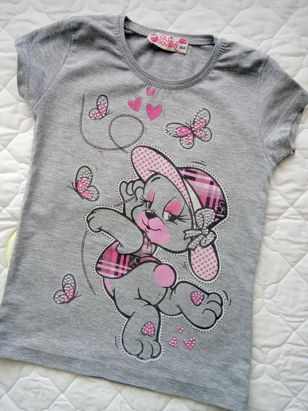 Футболка для девочки в хорошем состоянии, на рост 98-104 см. Замеры: длина 42 см, плечи 24 см, полуобхват груди 29 см.