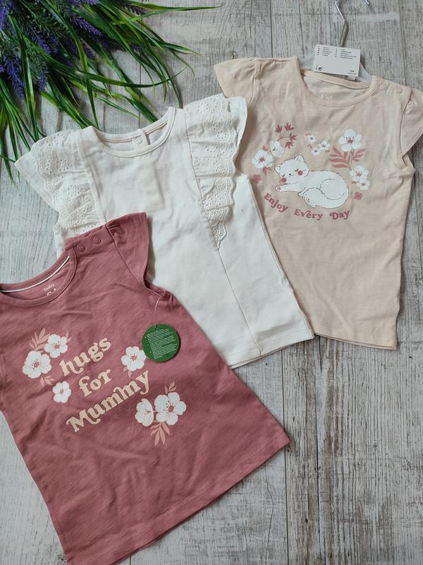 Футболка С&А ❤️ Німеччина Якість 🔥🔥🔥 Ціна за одиницю, продаж комплектом! Дуже ніжні🥰 Заміри зняті з однієї шт! 🏷️ довжина 37,5см 🏷️ пог 27см 🌿 В наявності є різні варіанти, різні бренди! Також багато дитячого та дорослого одягу всіх категорій! Від 3х од. знижка 😊