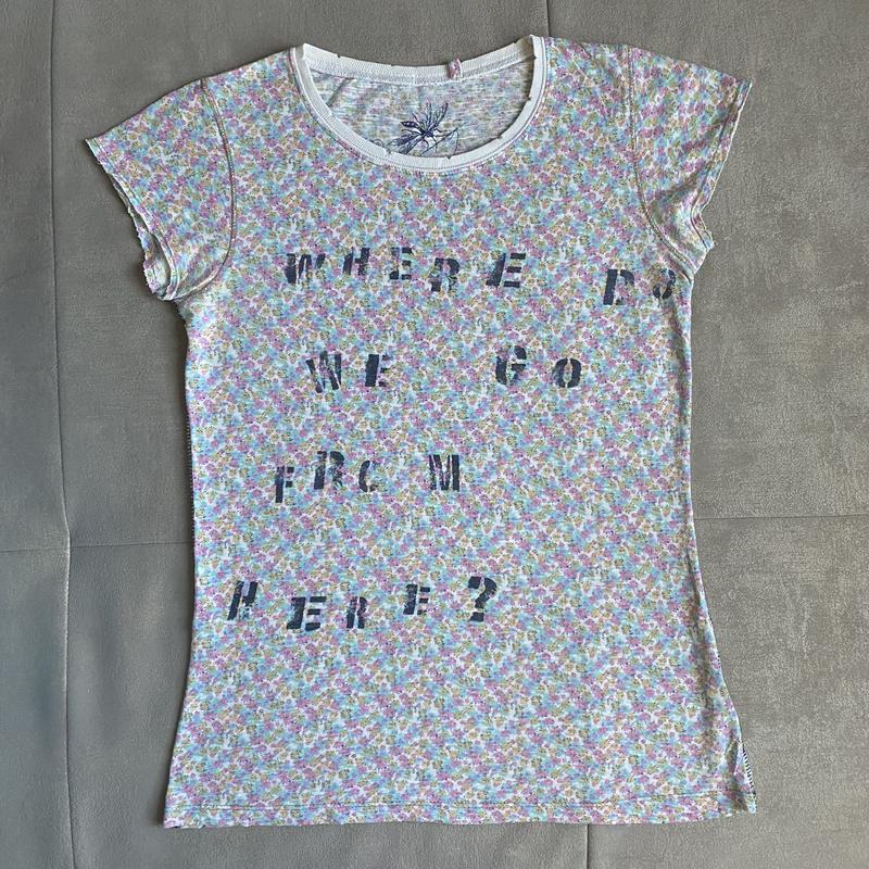 Футболка на девочку-подростке. Длина 56 см, нап.об. подмышками 38 см.