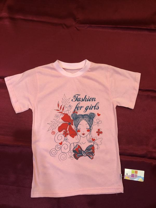 Футболка з малюнком На зріст 134 см Заміри: Півобʼєм по груді 34 см Довжина 50 см Плече 8 см довжина рукава 13 см Тканина: бавовна Колір: рожевий