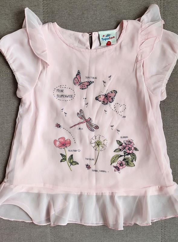 Нарядна футболочка для дівчинки. Дуже ніжна і вишукана. Внутрішня частина - 100 % бавовна, зовнішня - поліестр