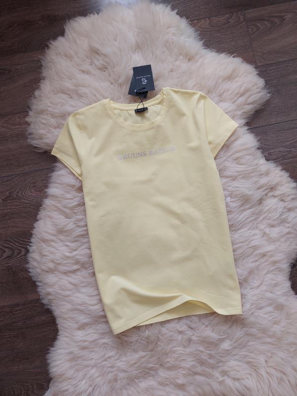 Базова футболка від відомого датського бренду Bruuns Bazaar. Колір трошки насиченіший, ніж на фото. На 14 років: ▪︎ довжина - 66 см; ▪︎ плечі - 36 см; ▪︎ НОГ - 45,5 см. Склад: 94% бавовна, 6% еластан.