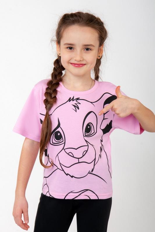 Футболка для девочек из натурального кулира. Модель свободного кроя с короткими рукавами и округлым вырезом, с легким одноцветным мультяшным принтом по переду и надписью на спинке. Футболка представлена в нескольких цветах с разными принтами. Полотно легкое, натуральное по составу. Полотно: кулир Состав: 100% хлопок. ,,1797