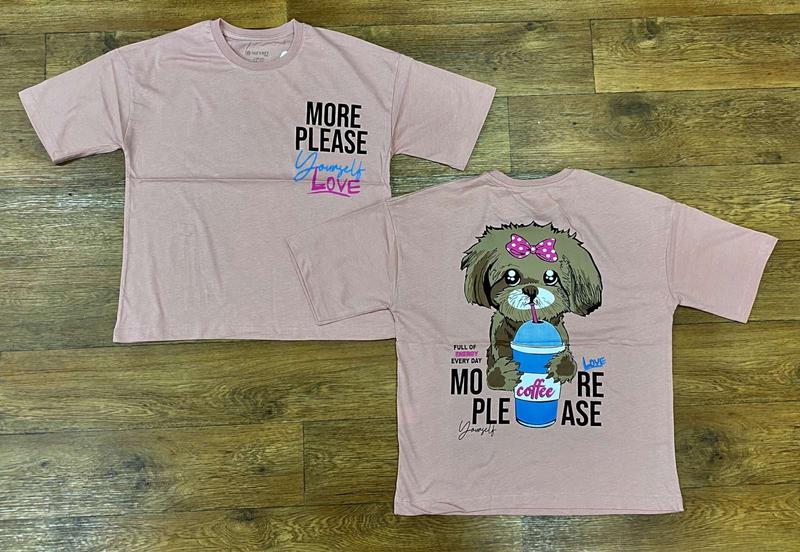 _Футболка для девочекподростка_ Oversize Цена 265 грн пудра собачка , рожева котик Размеры: 8-10-12-14 лет Производство Турция 🇹🇷 Качество 🔥🔥🔥 В наличии!!!️😍