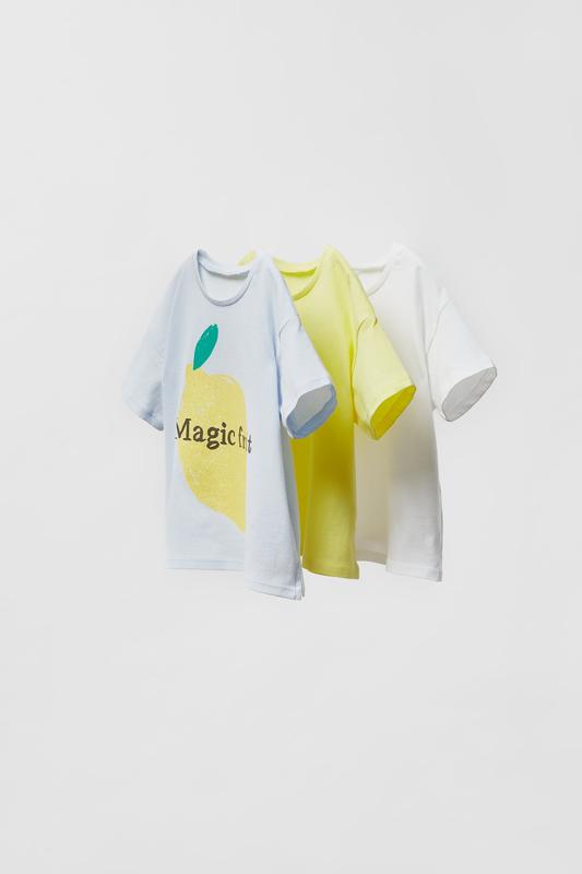 Набор футболок на 5-6 лет (116см). Белая: Пог-37см. Ширина в плечах -37см. Длина -45см, длина рукава -10см. Желтая: Пог-38см,ширина в плечах -38см,длина -42см,длина рукава -11см. Голубая: Пог-38см,ширина в плечах -38см,длина -43см, длина рукава -11см. Склад: 100%катон. Во всех футболках разрезы по бокам.