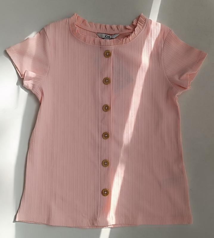 Футболка для девочки, рубчик. Планка с пуговицами декоративная.