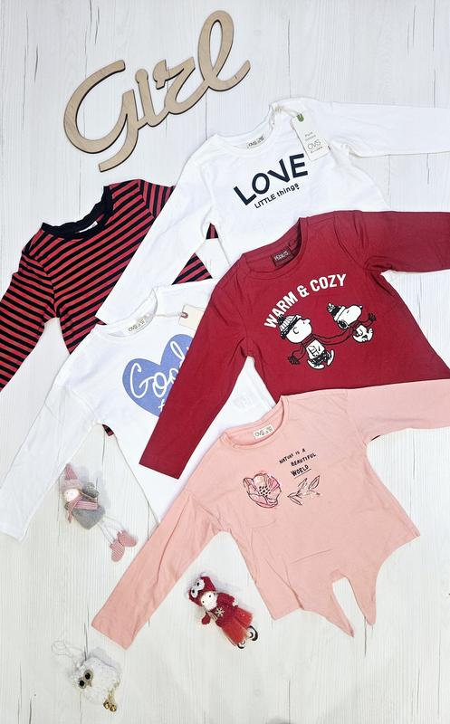 Новые лонгсливы OVS, бренд Италия, Cool Club, Польша, для девочек. Тканина: бавовна. Размер: 110см (4-5роков) Замеры: Длина 42-43см Полуобхват груди 31см Длина рукава от плечевого шва 36-37см. Есть другие лонгсливы в этом размере для девушек и мальчиков и другие в размерах от 98см до 180см. Некоторые на последних фото.