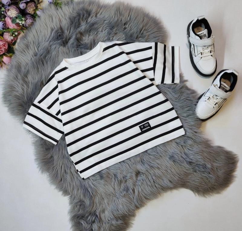 Футболочка в полоску✨ Ткань: Турецкий кулир кроя оверсайз замеры -длина/пог 128-134-42/45 140-146-46/46 152-158-49/48