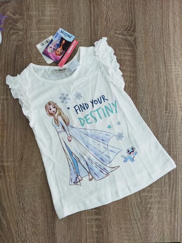 Для любителей Эльзы Футболка от LC Waikiki 100% бавовняна тканина Рукава отделаны рюшами Размер 4-5 лет и 10-11 лет Замеры 4-5 лет / 10-11 лет длина по боковому шву и сзади 39 см / 54 см длина по центру спереди 41 см / 55 см ширина под руками 29 см / 38.5 см ширина в талии 28 см / 38 см ширина внизу 33 см / 42 см Пересылаю Укр-почтой, Новой почтой, Мист экспресс после предварительного оплаты на карточку В Харькове можно забрать лично при встрече После платью (наложкой) и безопасной оплатой Шкаф не отправляю