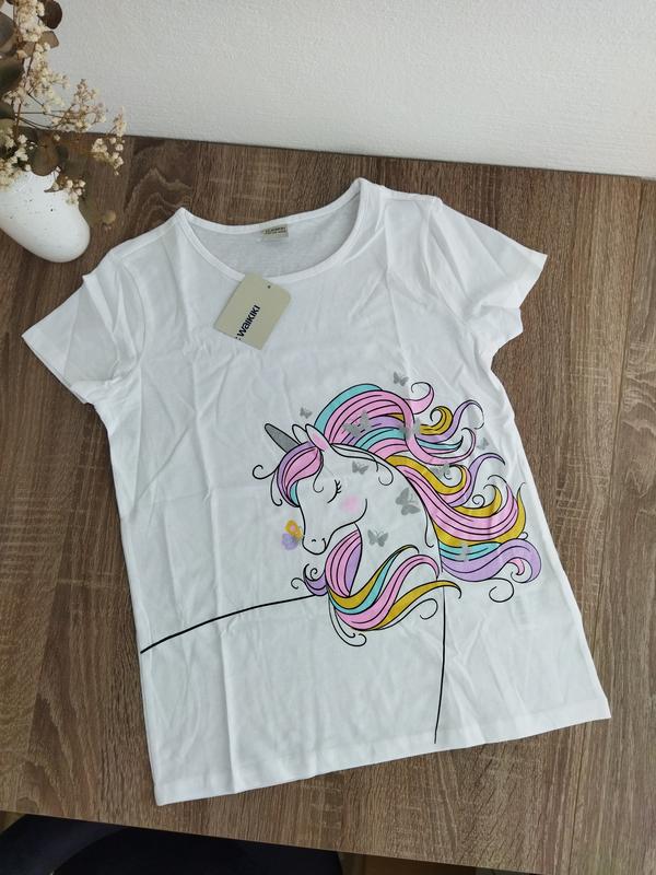 Нежная футболка от LC Waikiki Бабочки и рог нанесены глиттером на солнце красиво блестят 100% бавовна Размер 9-10 лет Замеры длина 53 см ширина под руками 40 см ширина в талии 39 см ширина внизу 40.5 см Пересылаю Укр-почто, Новой почтой, Мист экспресс через безопасную оплату или после предварительного оплаты на карту