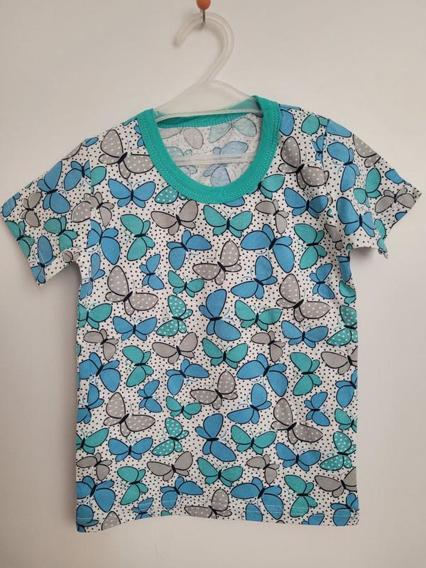 Футболка для девочки из натуральной ткани с ярким принтом. В наличии размер на рост: 98-104 см (замеры ширина 28 см, длина 41 см)
