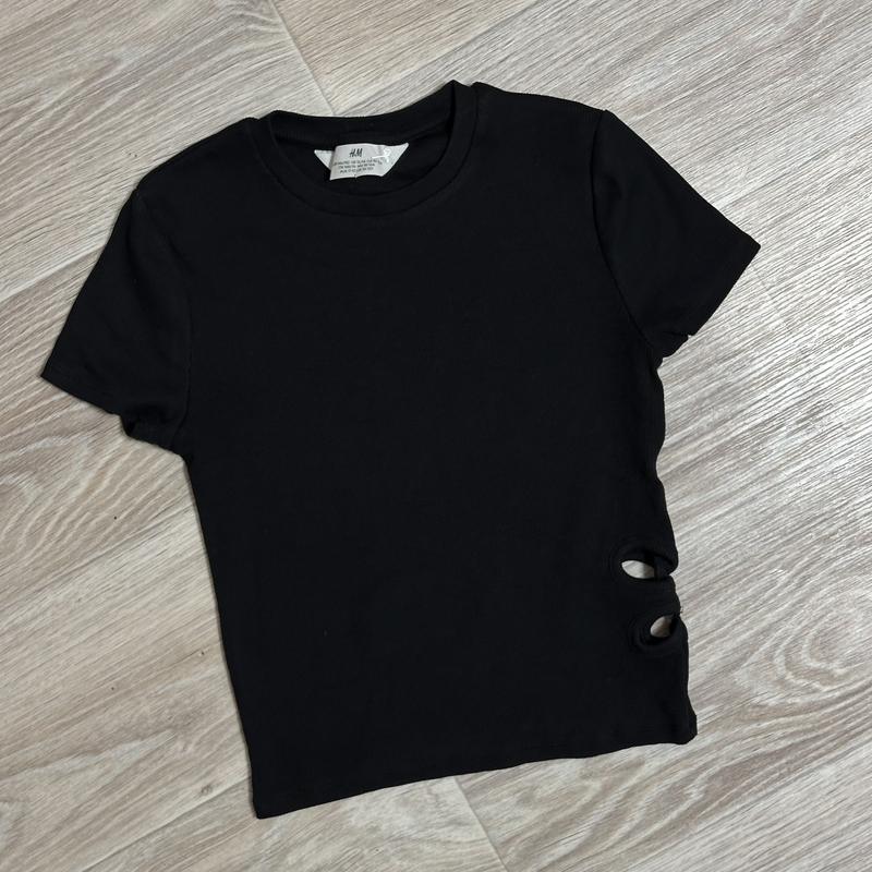 Еластична футболка в дрібний рубчик Стан супер 🏷️H&M 10-12 лет/146-152 Довжина 42. ПОГ 32+
