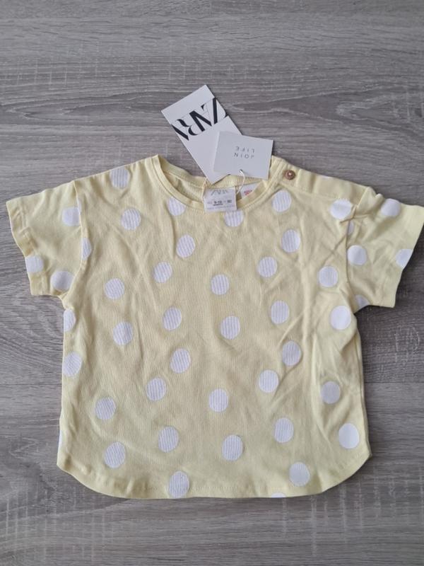 очень классная и качественная футболка для девочки размер 9-12мис (80см), приятный нежно желтый цвет