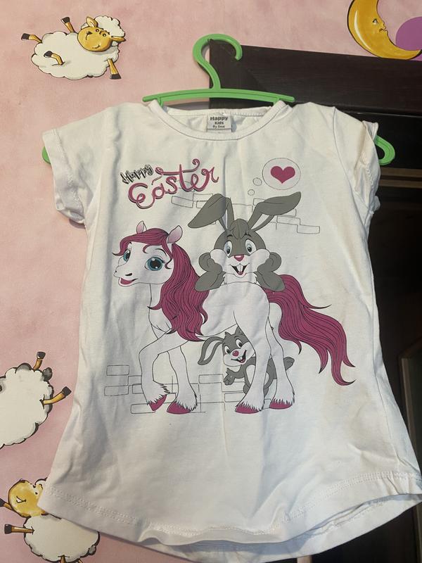Футболка для девочки 4 лет.Лицейская сторона в идеальном состоянии. На спине пара пьятен,каплинки.