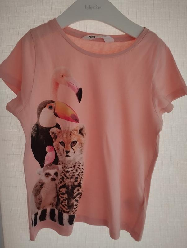 Футболка для девочки на рост 122-128см. Стан без дефектов, длина 43см, ширина 35см.
