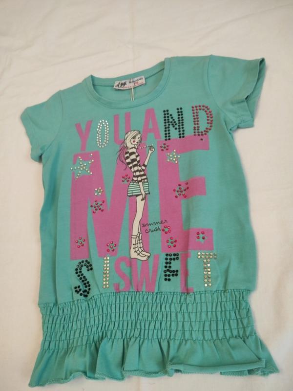 Стильная футболка для девочки бирюзового цвета