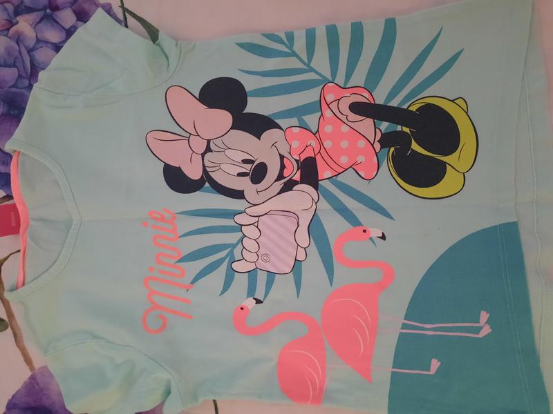 Очень красивая футболка мятного оттенка с актуальным принтум Minie