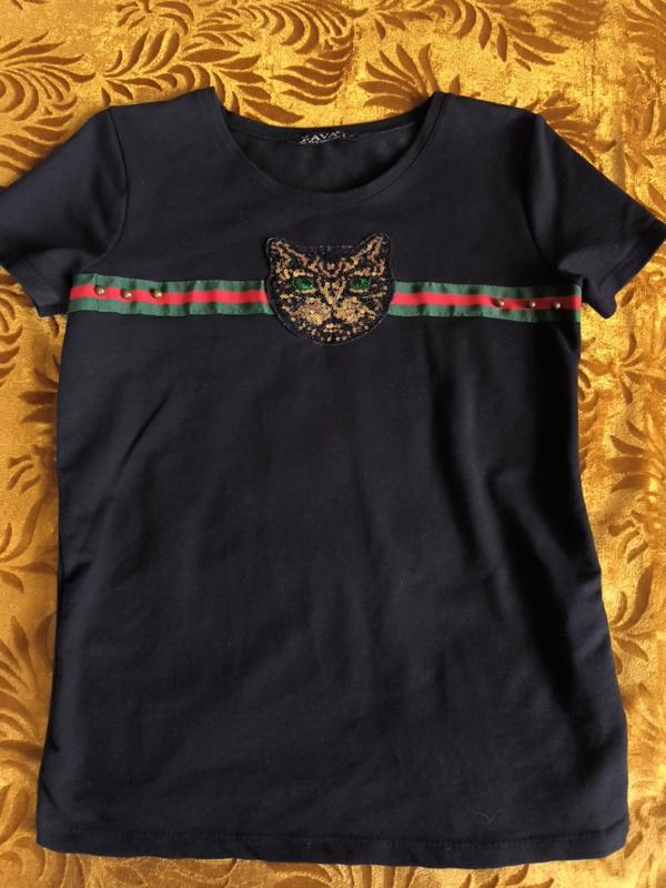 Симпатичная футболочка gucci из плотного трикотажа. Размер s. Длина 61, плечи 36,5, низ 84