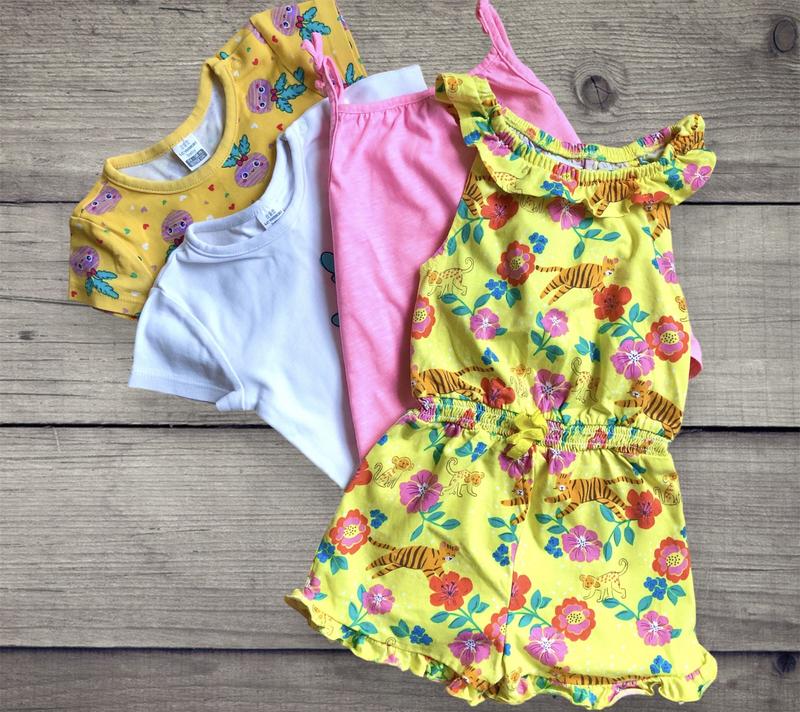 Набор для девочки 2-3роки в отличном состоянии, боди длина 48/46, майка длиннее35, ромпер длиннее48.