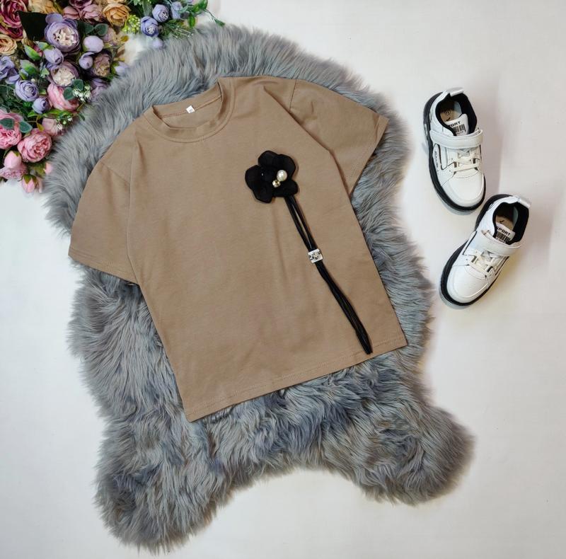 Хит этим летом удлиненная футболка ткань стрейч кулир Цветок пришитый замеры -длина/пог 146-53/41 170-62-45