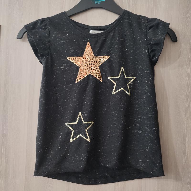 Чорна дитяча футболка с зірками на дівчинку 8-9 років Футболка з пайетками на дівчинку Зріст 134 см В гарному стані