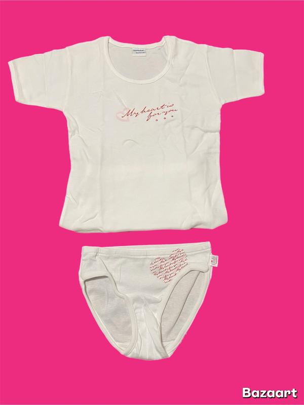 🥰Набор для девочки (футболка с коротким рукавом + трусики); 🥰Цвет: белый; 🥰Размер: 10 лет ( 140 см. );