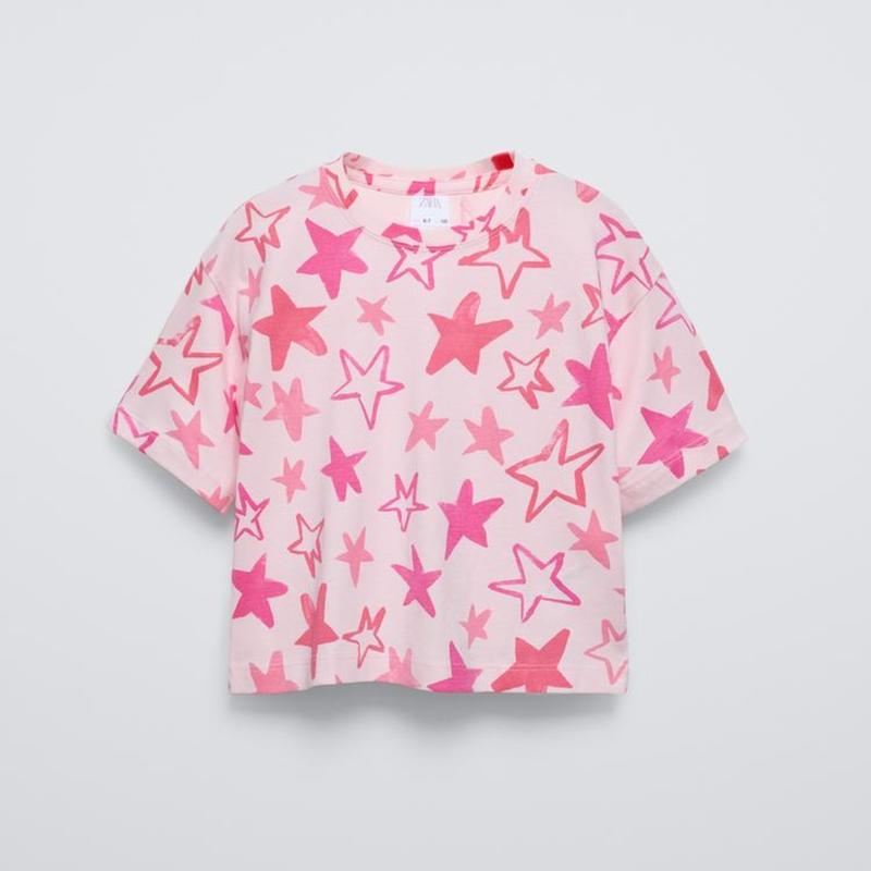 Футболка розового цвета с контрастным принтом от бренда Zara Укорочена модель оверсайз В наличии в Украине Доступный к заказу размер 📌 152 11-12 лет полуобхват груди 46 длина от плеча 46 Zara оригинал с бирками 👍