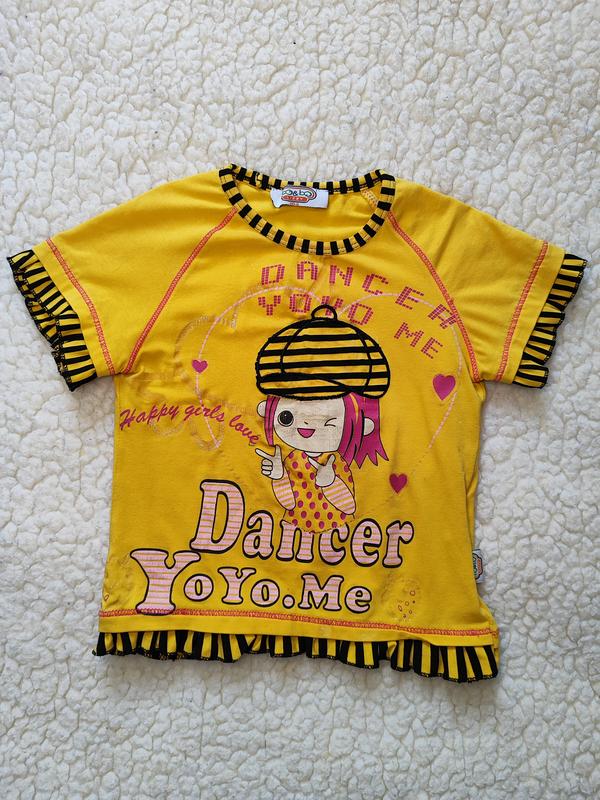 Футболка для девочки Состояние: идеальное На возраст: 4 года На рост: 104 см Сезон: Лето, весна, осень Материал: 67% хлопок, 33% полиэстер Фирма: bo&bo Lizzy Замеры: Длина: 36 см Ширина по груди: 28 см Ширина по плечам: 26 см
