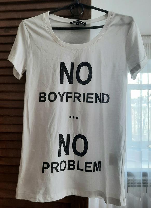 Новая белоснежная футболка. Спереди надписи усеянные стразами, сзади белая , S, цена + шафа доставка, ширина под руками 41.5см, длина 64см, тянется