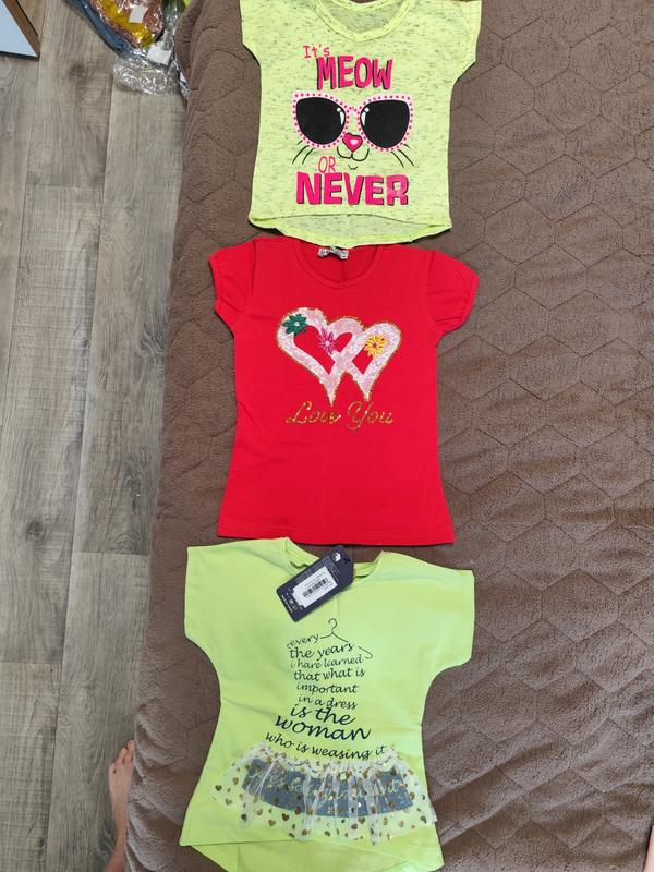 Футболки девчачьи 98-104 см, 110, см,116 см можно все вместе!! По 85 грн за шт. Все новые, у двоих нет бирки. Безопасной пересылки